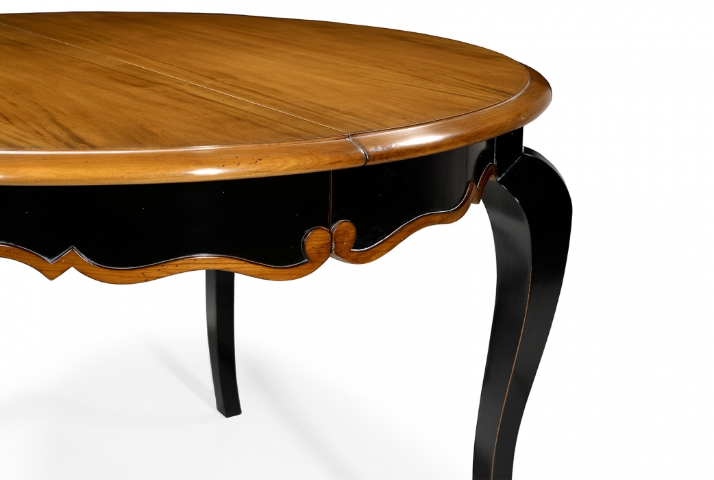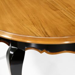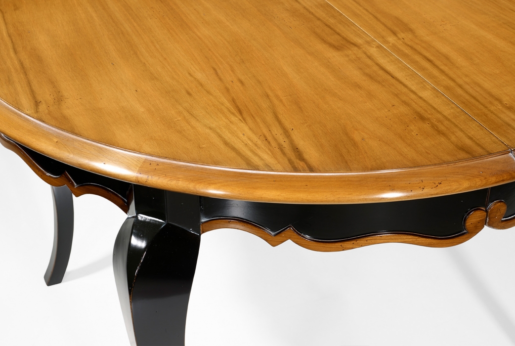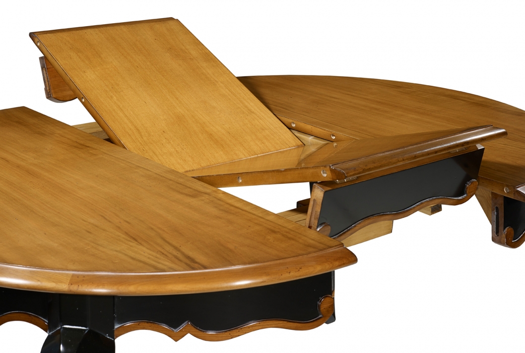 Được thể hiện bằng gỗ Anh đào với lớp hoàn thiện màu đen Antique Black và các chi tiết bằng Leblon, bàn ăn Bauffremont là Louis XV với các chi tiết chạm khắc bằng tay tinh tế dọc theo chân tường và chân uốn cong trên hệ thống cabin.