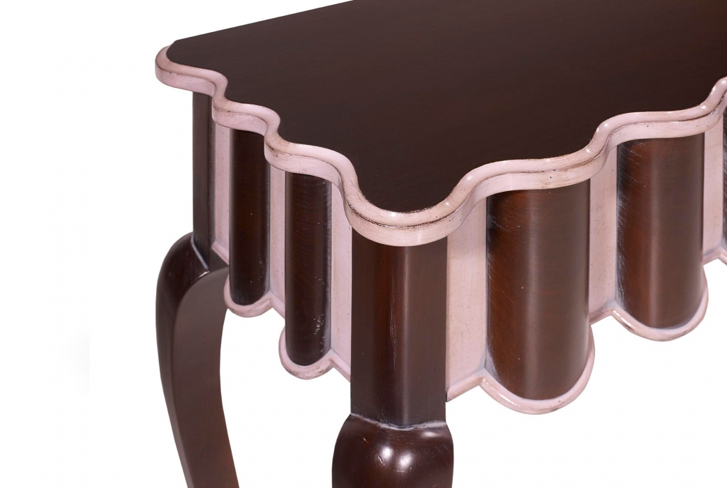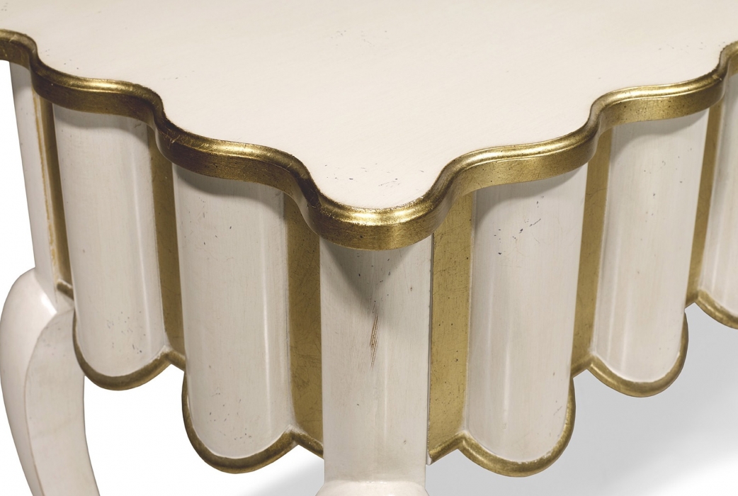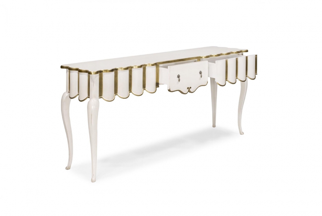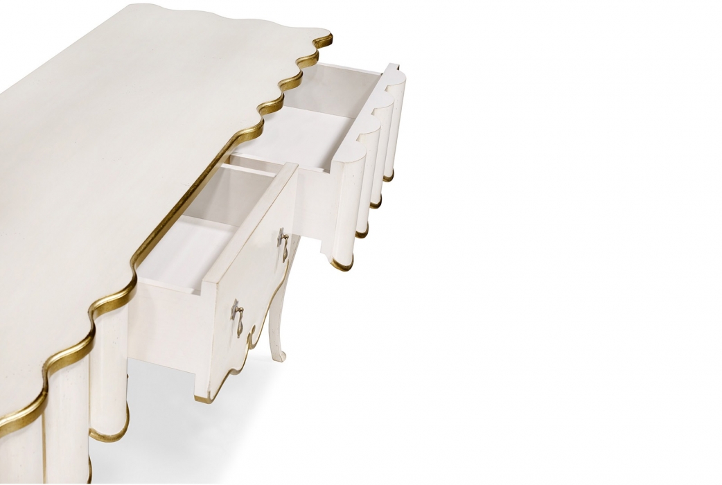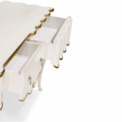 Bàn điều khiển Bilbao được làm bằng gỗ Anh đào với lớp hoàn thiện màu Trắng rửa và các chi tiết bằng Vàng lá. Chi tiết bằng Vàng Bạc Lá theo yêu cầu. Giá không bao gồm vàng hoặc bạc lá.